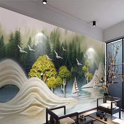 Amazon Com Wall Mural 3d Wallpaper Embossed Lake Light